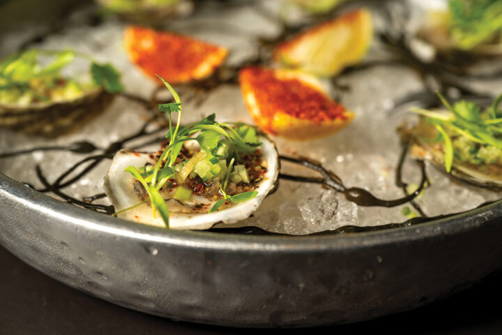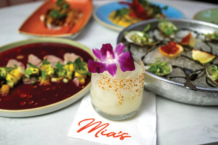 The Mia’s menu begins with a lengthy list of shareables suited for up to three diners per order. Raw and cured sea fare options abound with hamachi in hibiscus ponzu with charred pineapple, coconut-tinged snapper ceviche with spicy aji amarilllo, and oysters in a smoky lime-and-mezcal mignonette. Street-food classics are also celebrated with flaky picadillo empanadas served with a peanut-based chipotle salsa; blue-corn street tacos stuffed with grilled octopus, pork belly, mushroom tinga; or fried cod served gringo-style with jack cheese, cabbage, pico de gallo, and harissa-spiked ranch dressing.