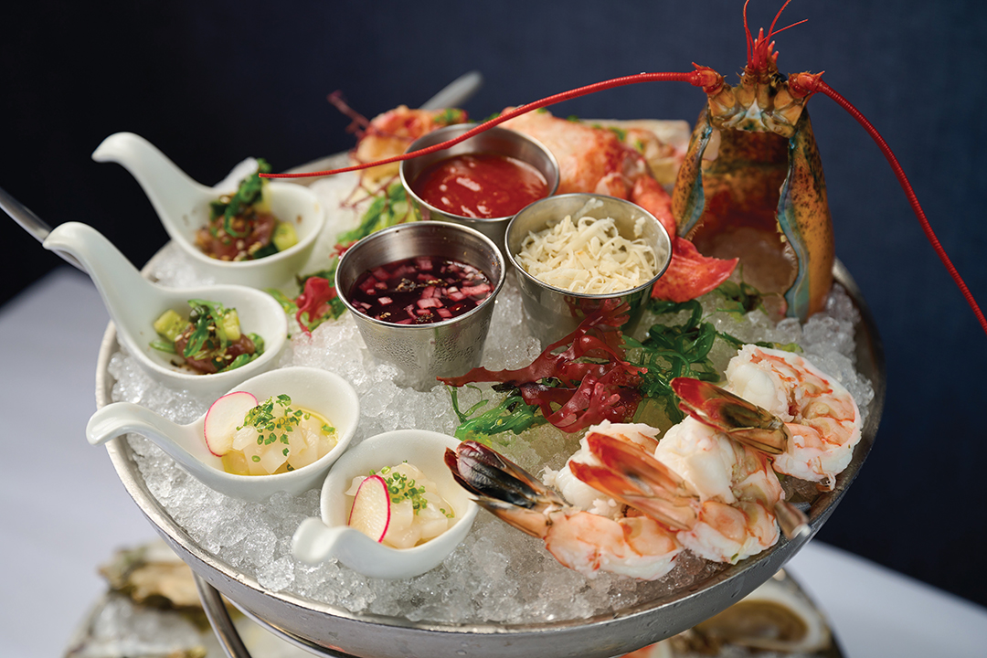 Guests can sit in Stake’s upscale, dimly lit dining room, in the more casual bar, or outside on the terrace. We began by sampling a seafood tower filled with fresh, delicious shellfish — oysters, shrimp, crab, poke crudo, and more. We could have stopped right there but we just had to try “The Taste of Wagyu,” splitting a sampler of small portions of perfectly prepared cuts of steak. On a previous visit, I tried the decadent butter-poached lobster mashed potatoes with cognac followed by freshly caught fish. The menu also features bountiful salads and an array of vegetables from the wood-fired oven. If you have room for dessert, go for the seven-layer chocolate cake, worth every calorie. Just don’t count them.