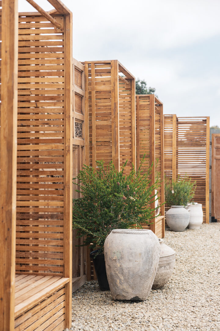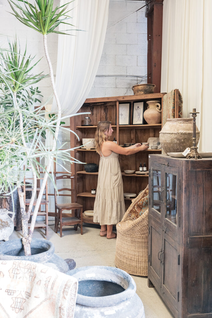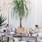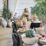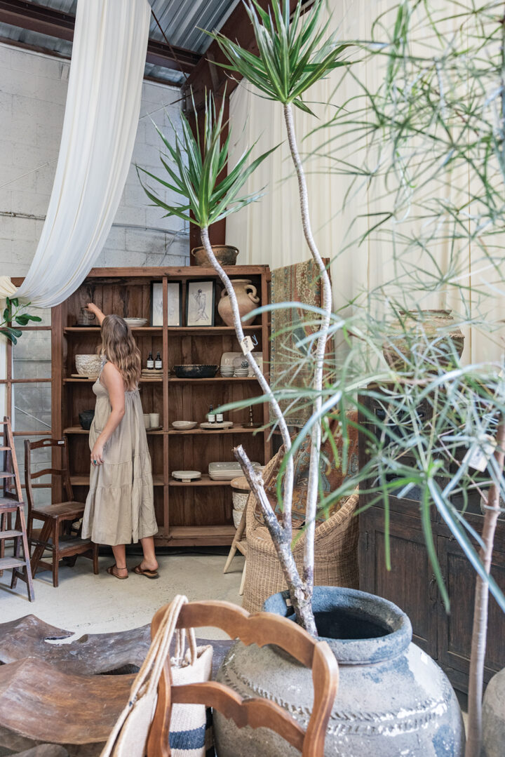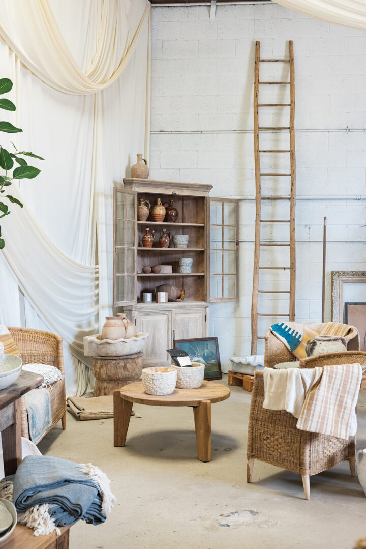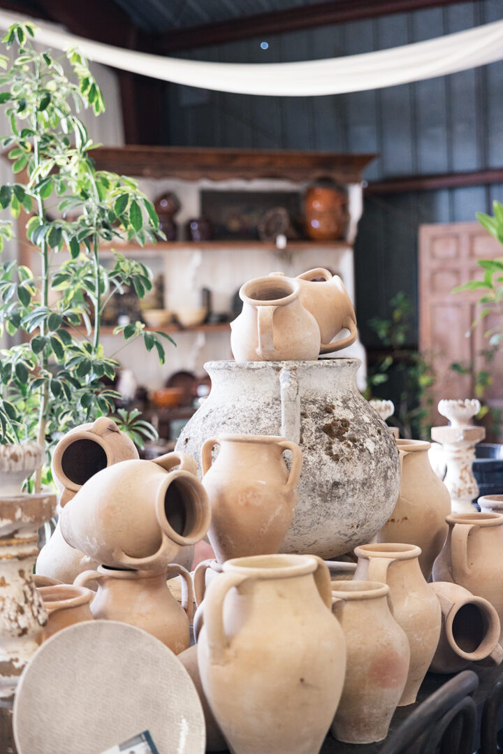 Necks crane toward the high ceilings draped in swags of creamy fabric. Customers move gingerly through the 7,000-square-foot space dubbed “The Grange,” where tabletops are dripping in urns. An outdoor terrace is bedecked with a greenhouse, which can be replicated upon request, for your own backyard. Sculptural houseplants are by the beloved Printwood. And the antiques? Freshly unloaded from a French container. It’s a Coup de Foudre!